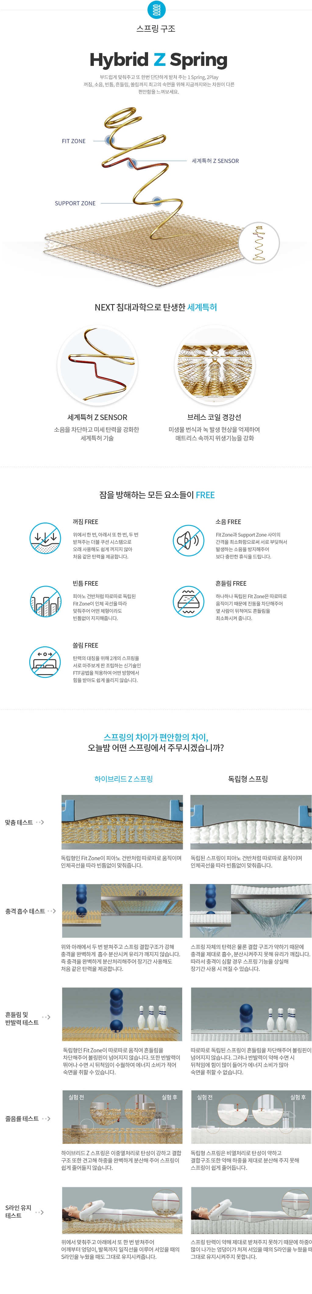 최고의 숙면을 위한 하이브리드 Z 스프링의 5 FREE SYSTEM